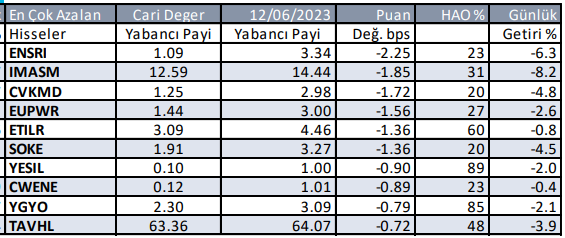 Yabancı payı en çok artan hisseler - Günlük - İş Yatırım #ensrı #ımasm #CVKMD