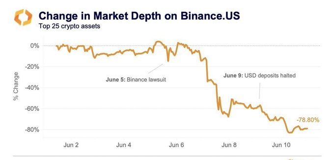 取引所のBTC供給量が5年振りに低水準に低下。一般的に、取引所からBTCが引き出されると価格が上昇する傾向にある。 ただし、今回はSECの訴訟問題で取引所から資産を避難させた人も多くいると予想される。