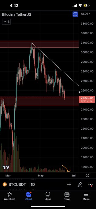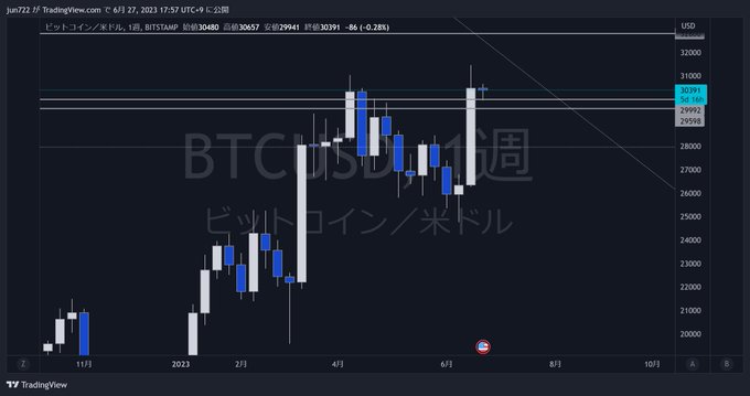 週足見る限り大きく戻して来るようには見えないです。 陽線になれば来週以降の更なる続伸に期待が持てそうです。 #BTC