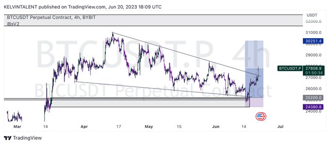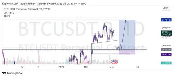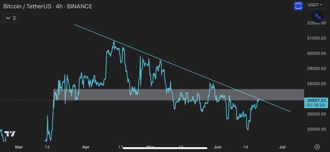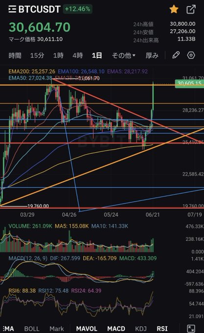 #BTC #Bitcoin $31000付近のレジスタンス抜けたら真空地帯🛫 アセンディングトライアングルのレジスタンス📈 Shortpointではありますが、今の動きでは封印します‼️
