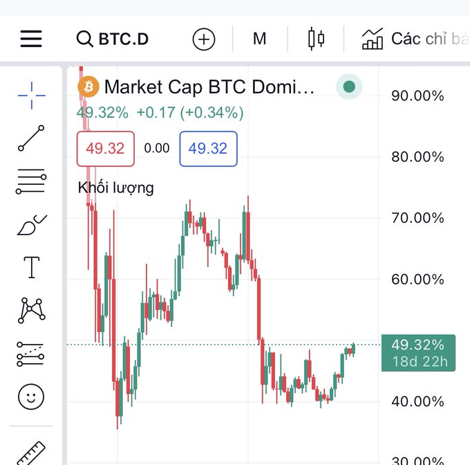 Btc.d vượt 49% - mức cao nhất hơn 2 năm trở lại đây