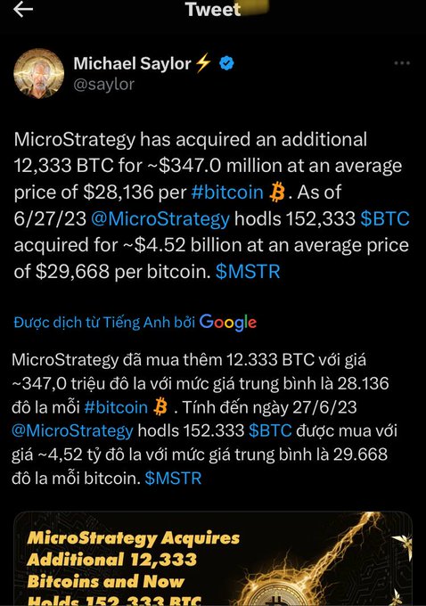MicroStrategy vừa công bố đã mua thêm 12,333 BTC hôm