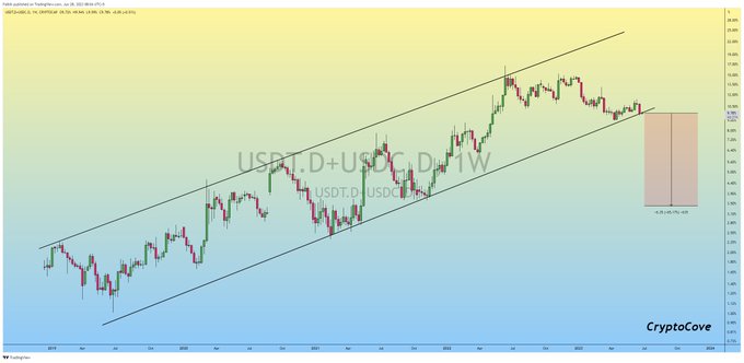 $USDT + $USDC Dominance on the Weekly timeframe Chart