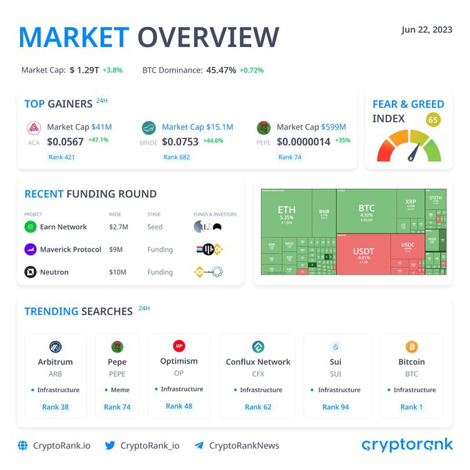 📈Pazara Genel Bakış Piyasa değeri: 1,29T$ (+%3,8) BTC