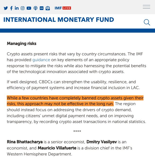 IMF latest stance on crypto 👇 https://t.co/wao96jf