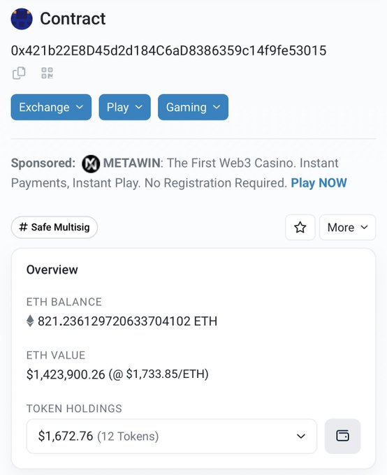 Network “Team” Multisig currently holding more eth