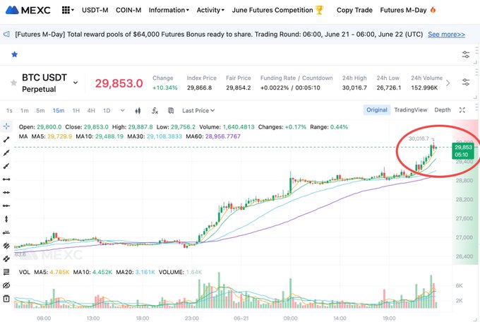 $BTC breaks $30,000 again 🚀🚀🚀 #Bitcoin #MEXC https://t