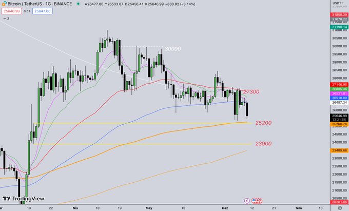 #Bitcoin belirlediğimiz destek bölgesinin altında gün