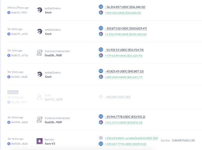 A whale borrowed 339,448 $USDC from #Aave 1 hour ago
