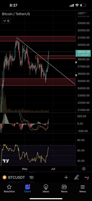 $BTC 1D Looking strong breaking the diagonal of the