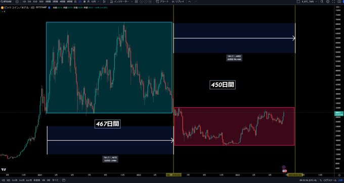 おはようございます! BTC 3日足 450日の奇跡 本日も宜しくお願いします。 高値圏:467日間 安値圏:??? #Wトップ VS #逆三尊 ! 激熱い夏の戦い始まりそうです🫡