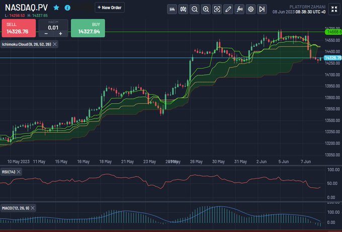 #NASDAQ 13950 - 14100 bölgesi üzerinde kısa vadeli