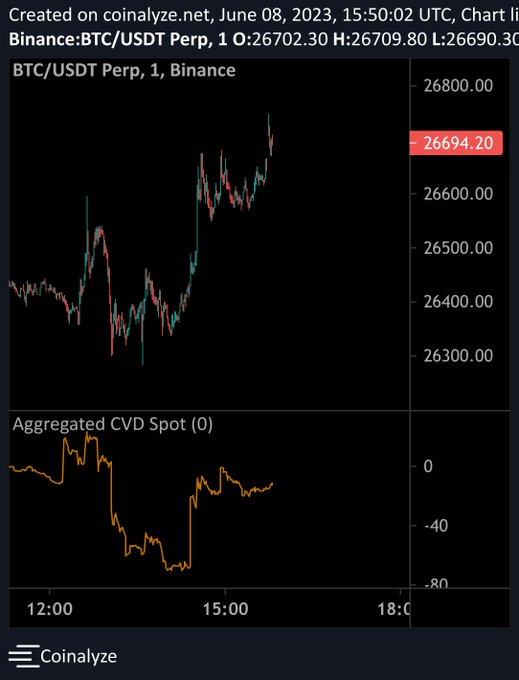 BTC 1dk negatif uyumsuzluk geldi. (Düşüş emaresi olarak