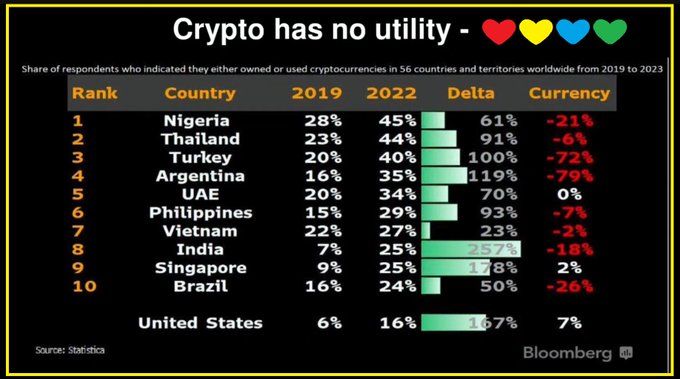 ❤💛💚💙 Crypto is still being adopted worldwide. We