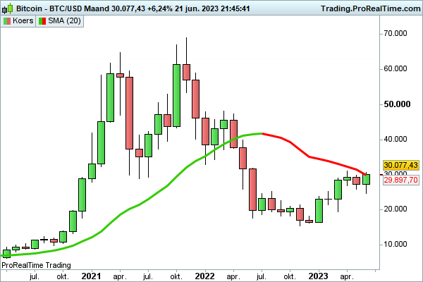 $BTC #Bitcoin heeft vandaag de SMA20 maand aangeraakt