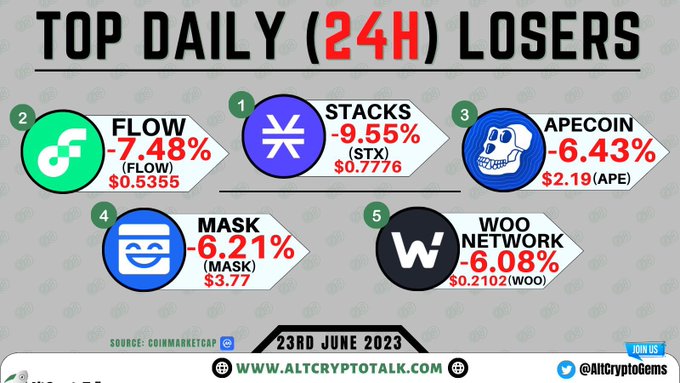 Top Daily Crypto Losers | 23/6/23 1- #Stacks $STX 2-