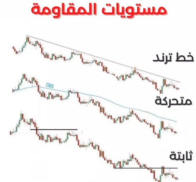 #شرح كيف يمكن تحديد مستويات المقاومة : 1- خطوط الترند 2-