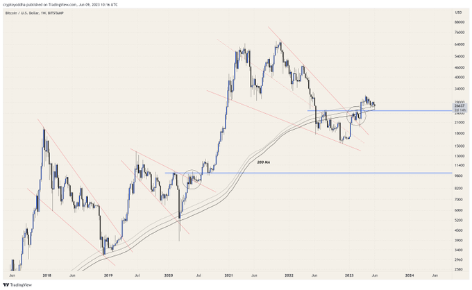 $BTC has been resting above the weekly 200 MA for a