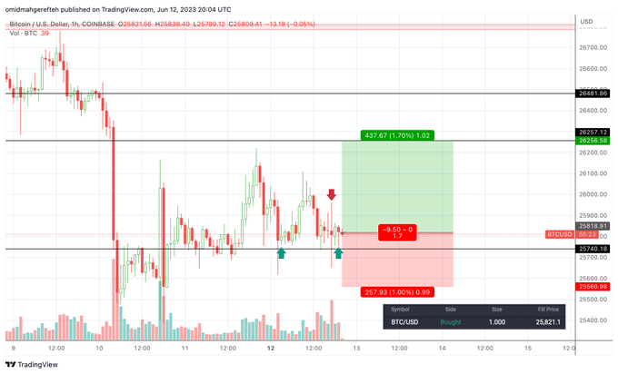 Longed #BTC at $25.8k. Aiming for another 1.5%+ pump