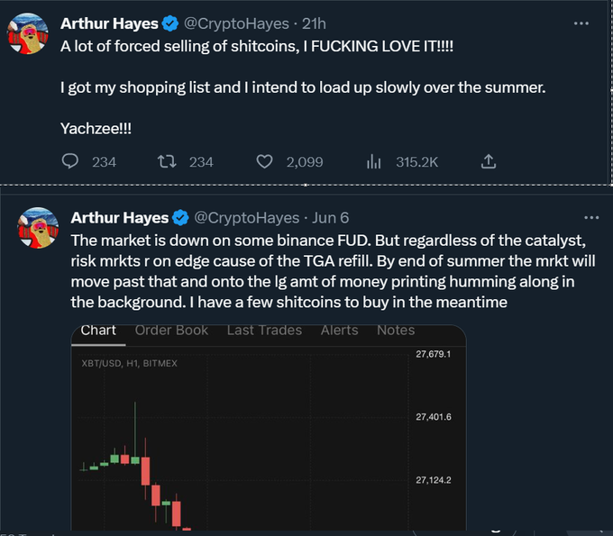❤💛💚💙 Arthur Hayes tweeted that he's buying poop coins