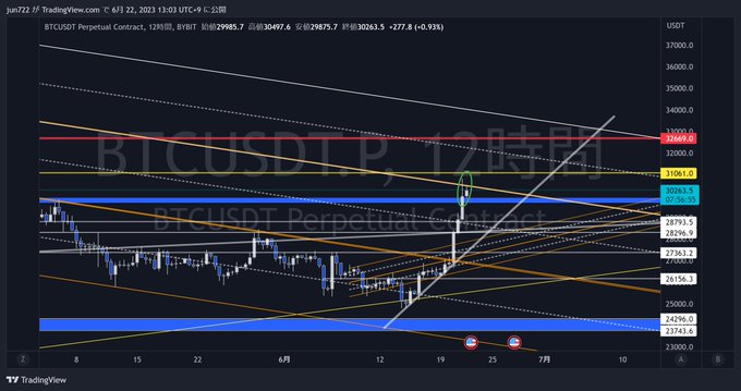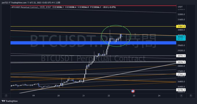 この三段構えの平行チャネルが如何に機能しているかが理解いただけるかと思います。 #BTC #TA https://t
