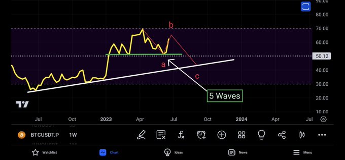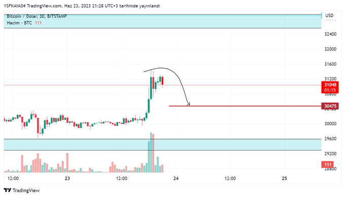BTC. arkadaşlar buradan bir düşen dalga oluşmalı. bu