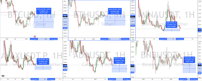 上がってる仮想通貨でも見るか… → $AAVE +32% え?DeFiサマーきてる? いまって本当に2023年か? $AAVE $SNX $UNI $CAKE $DYDX $APE $CRV $GALA