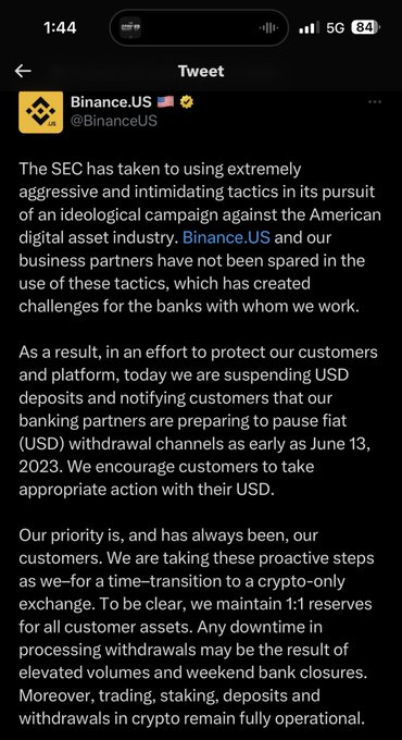 BinanceUS suspends USD deposits. why aren’t we crashing