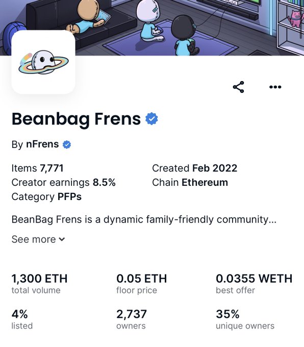 🎊 - 1300 ETH (~$2.4M in secondary vol) 🤝 - half of