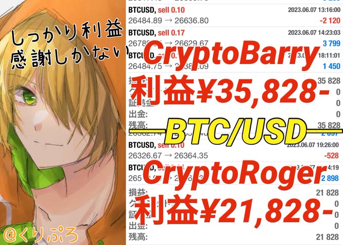 はーい‼︎ 昨日もしっかり利益❗️ 6/7水曜日 ⭐️バリー 利益¥35,828- DD5%前後 ⭐️ロジャー 利益21