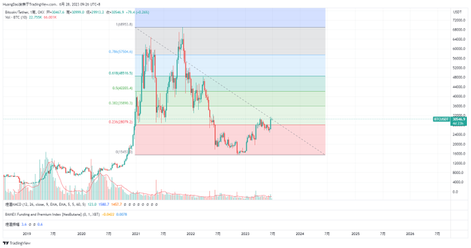 #BTC #ETH 6.26 重申几个观点 1.牛很遥远 BTC用了大半年的时间也仅仅收回最高跌幅的30%,而一众山寨币甚至还处于熊市低点附近,BTC