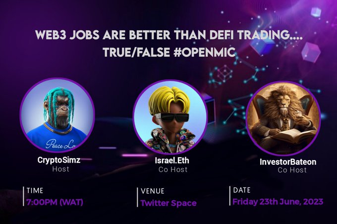 I will be present on a space by 7pm Topic: Web3 Jobs