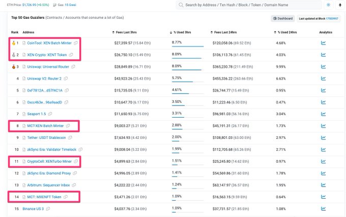 #XEN Miners dominate Gas Guzzlers on ETH. 1. Top