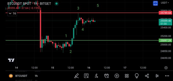 #bitcoin - 1hr Can we see a little 5 wave impulsive