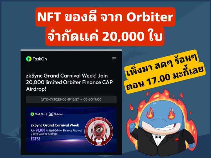 🚨Orbiter x Task on เเจก NFT 20,000 ใบ . ✅Bridge ขั้นต่ำ