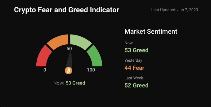 $BTC is back in the GREED stage. https://t.co/b9AY