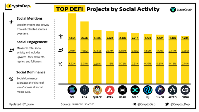 ⚡️TOP #DeFi Projects by Social Activity 8 June 2023 $SOL