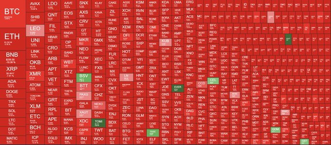 BTCとETH以外真紅。あとビットコインドミナンスが跳ね上がった。 https://t.co/g1f