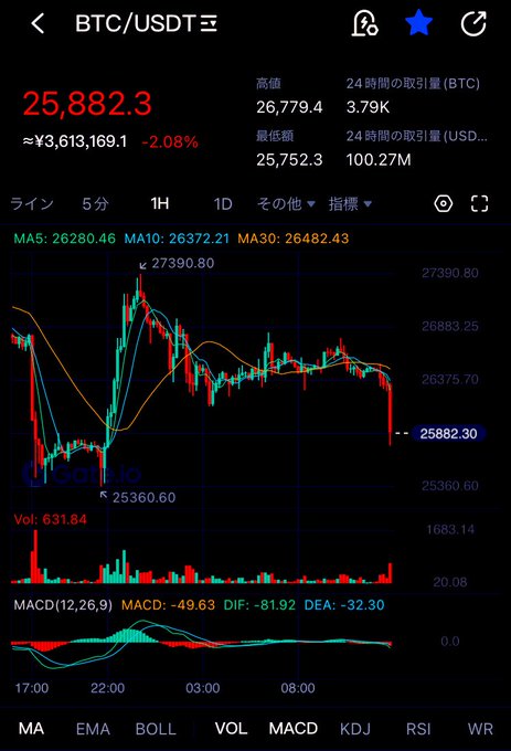 独り言⚠️ $BTC 25,700- 〜 25,900- 開運鬼龍🐳#BTC㊗️ https://t