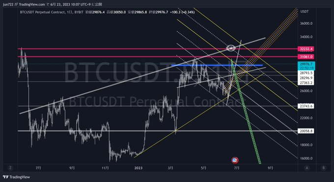 ✅#ビットコイン (#BTC USD)分析 シナリオ自体に変更はナシ👌 32,000ドル付近で押し返されると言い出したが、厳密には32