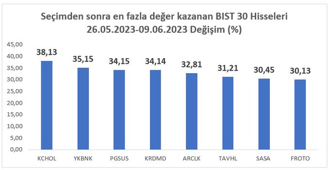 Seçimden sonra en fazla değerlenen Bist 30 Hissesi #KCHOL