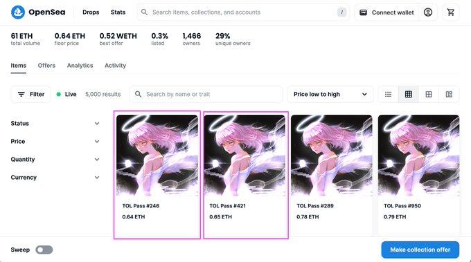 ✅TOL Pass 0.6 ETH代が2つになりました✨ このタイミングでお迎えいただくと、めちゃくちゃ嬉しい!✨ 新たな仲間が増えるのを待っています👧🏻🌈✨