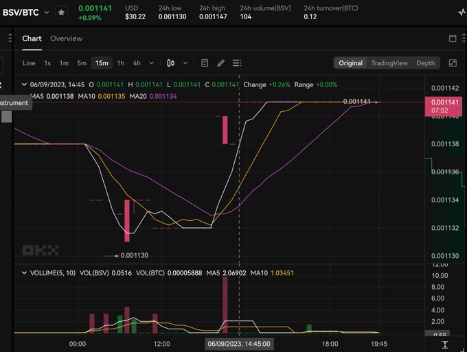 On OKX exchange, no BSV trading has taken place the