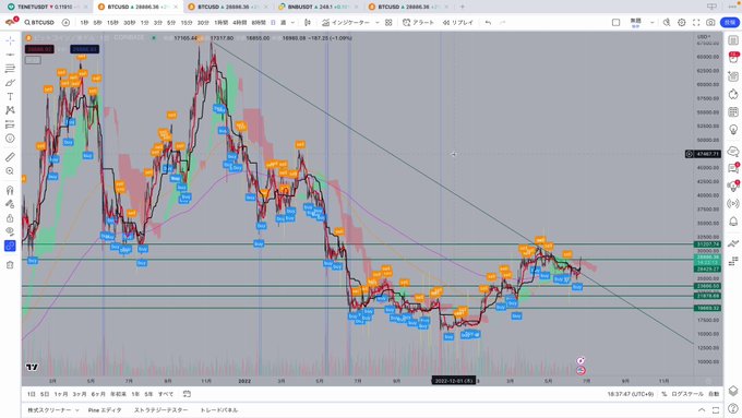 BTCがトレンドライン抜けたよっていう単純な動画なり https://t.co/x8TL3IOLzg