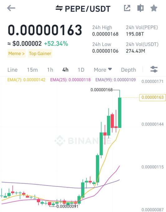 $PEPE pumping hard!! Is #MEME season starting? 👀 More