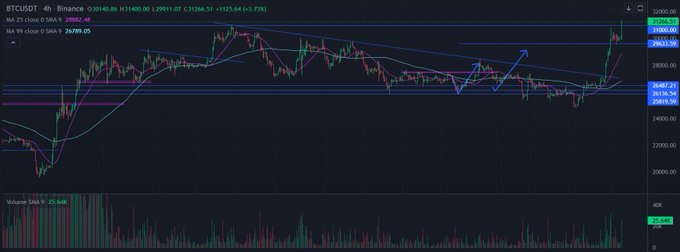 #BTC vừa phá kháng cự ở 31000$. Vẫn chưa hề có