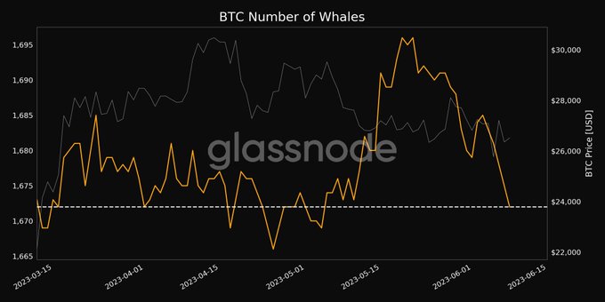 Le nombre de whales #Bitcoin a diminué de manière significative