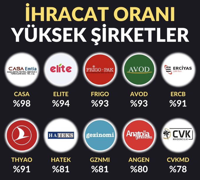 İhracat oranı yüksek şirketler #Bist100 #Borsa #Bitcoin