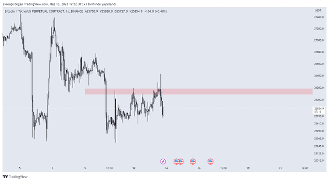 Btc için sıkıntılı bir bölge var şu anda ancak boyalı