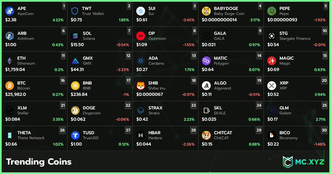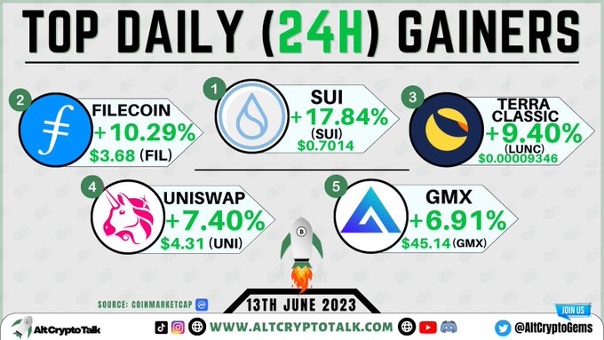 Top Daily Crypto Gainers | 13/06/23 1- #Sui $SUI 2-